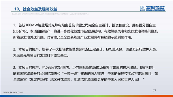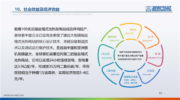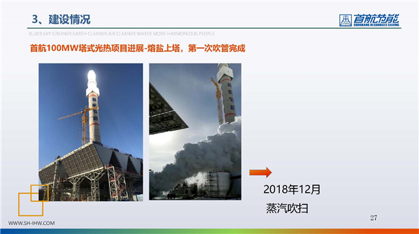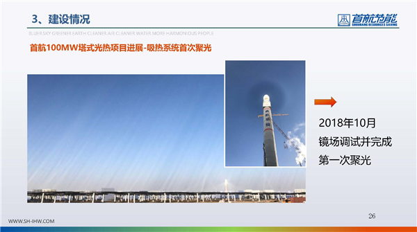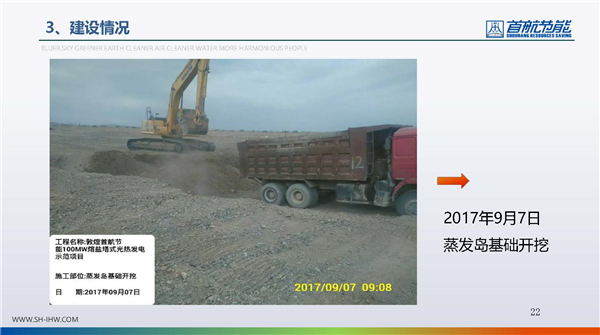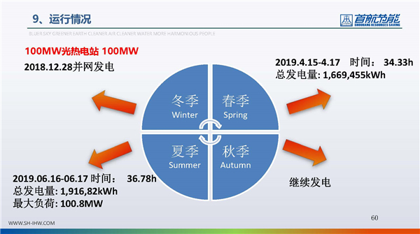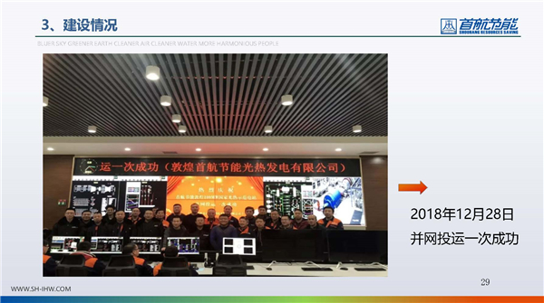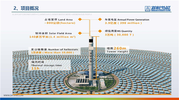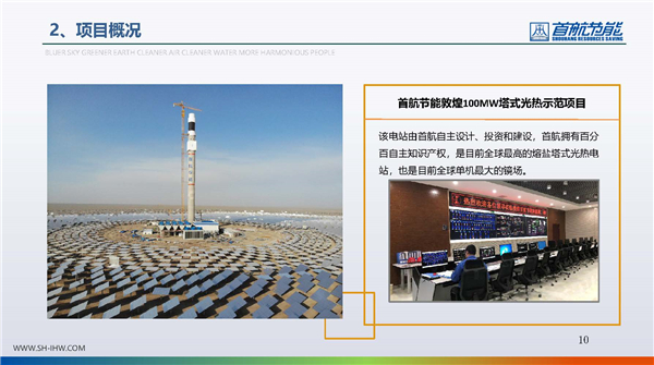 为探讨光热发电开启能源转型新途径,7月24日,由中国电机工程学会主办,电力规划设计总院、鲁能集团有限公司和中国电机工程学会太阳能热发电专业委员会联合承办的“2019年清洁高效发电技术协作网太阳能热发电技术专题会议”在青海省格尔木市举行。北京首航艾启威节能技术股份有限公司司副总经理在会上作了题为《首航节能敦煌100MW熔盐塔式光热电站建设与运行》的主题报告。在报告中,他对首航节能敦煌100MW光热电站的建设和运行情况作了全面梳理。并表示:该电站的投产,培养了一大批塔式熔盐光热电站工程设计、EPC总承包、调试及运行维护人员,为后续光热项目的发展打下坚实基础;同时,也为我们立足国内、迈向国际新能源市场积累了雄厚的技术储备。他相信,随着国家改革开放步伐的加快和“一带一路”建设的深入推进,中国的光热技术必将走出国门,在全球适宜(发展光热的)地区开花结果,用清洁能源造福更多的中国人民和世界人民。以下是他PPT的主要内容: