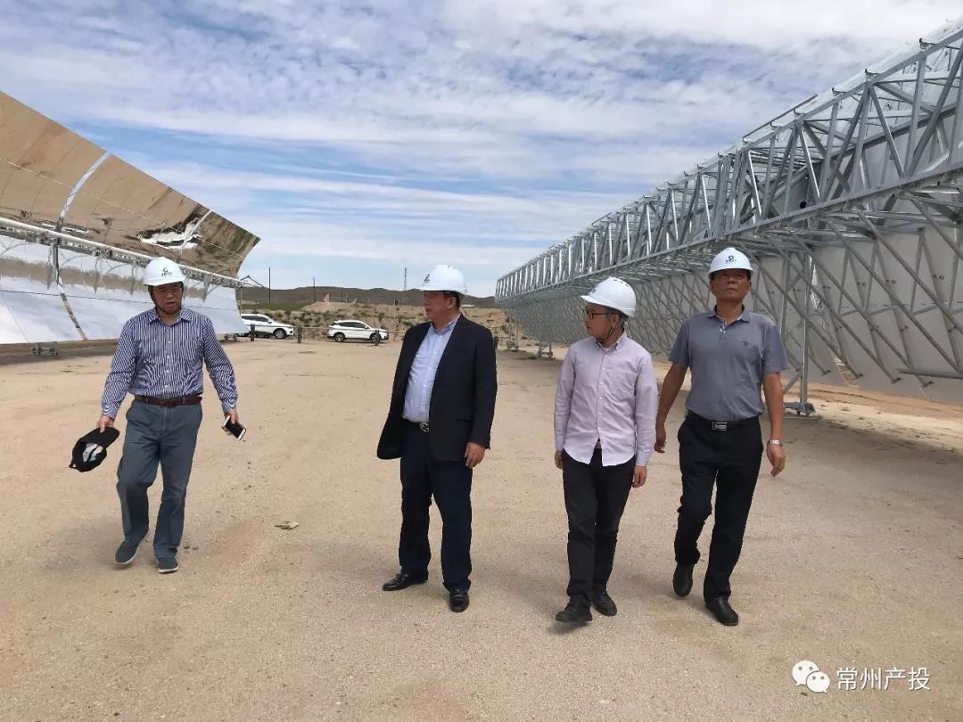 2019年8月21日至24日,常州产业投资集团有限公司(简称产投集团)党委副书记、副总经理查道寅,副总经理薛国俊一行5人前往乌拉特中旗,对参股企业常州龙腾光热科技股份有限公司(以下简称“龙腾光热”)光热示范项目进行调研。