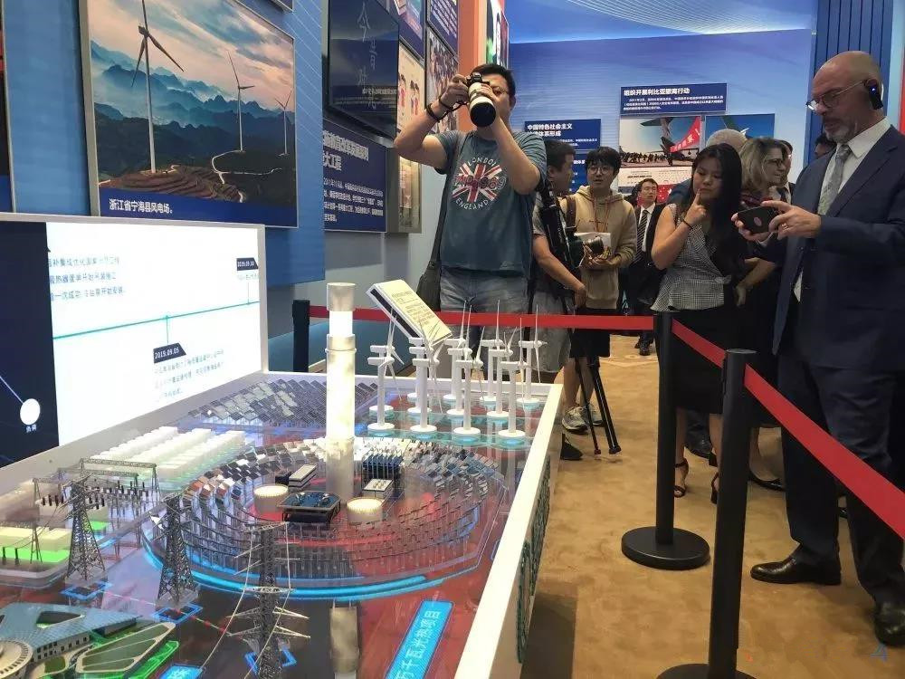 展出当天,鲁能青海海西多能互补国家示范工程的沙盘展示吸引了众多在场参观人员驻足观看。