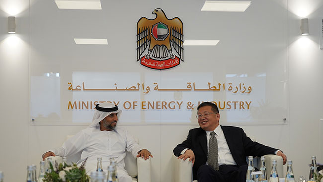 11月12日-14日,国家能源局局长章建华访问阿联酋,会见阿联酋国务部长兼阿布扎比国家石油公司总裁苏尔坦•贾比尔、阿联酋能源与工业部部长苏海勒•马兹鲁伊、阿布扎比能源局局长阿维尔•穆尔氏德•穆尔,就加强两国油气、新能源、核能等合作深入沟通,达成多项共识。