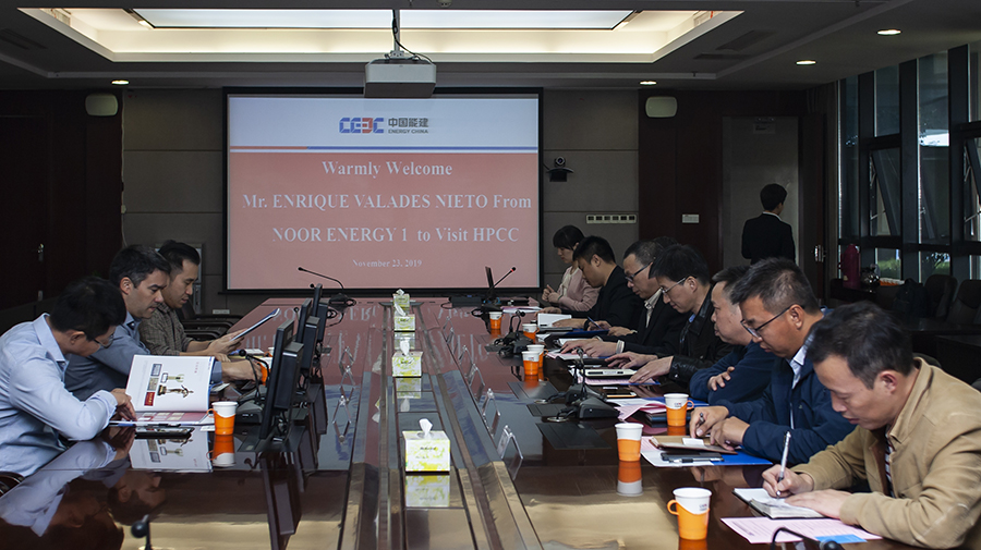 11月23日,迪拜950MW光热+光伏太阳能发电项目(Noor Energy 1 CSP-PV Project)施工经理Enrique先生到公司考察。中国能源建设集团湖南火电建设有限公司(简称湖南火电)副总经理兼总工程师欧立新代表湖南火电全体员工对Enrique先生表示热烈欢迎!