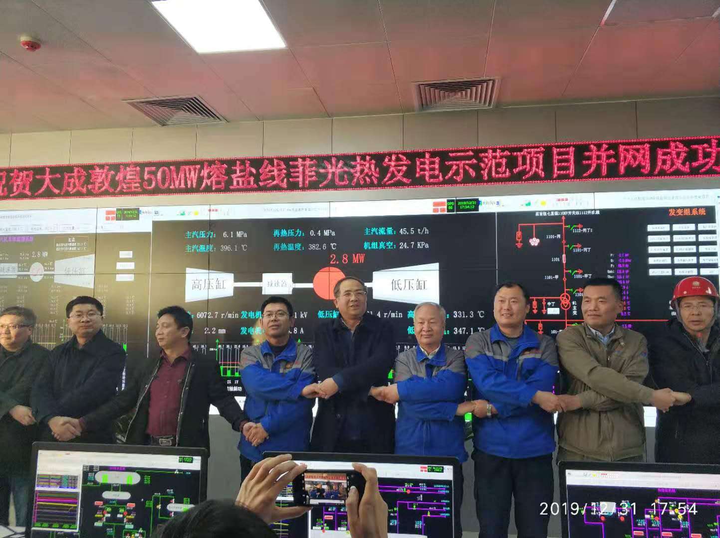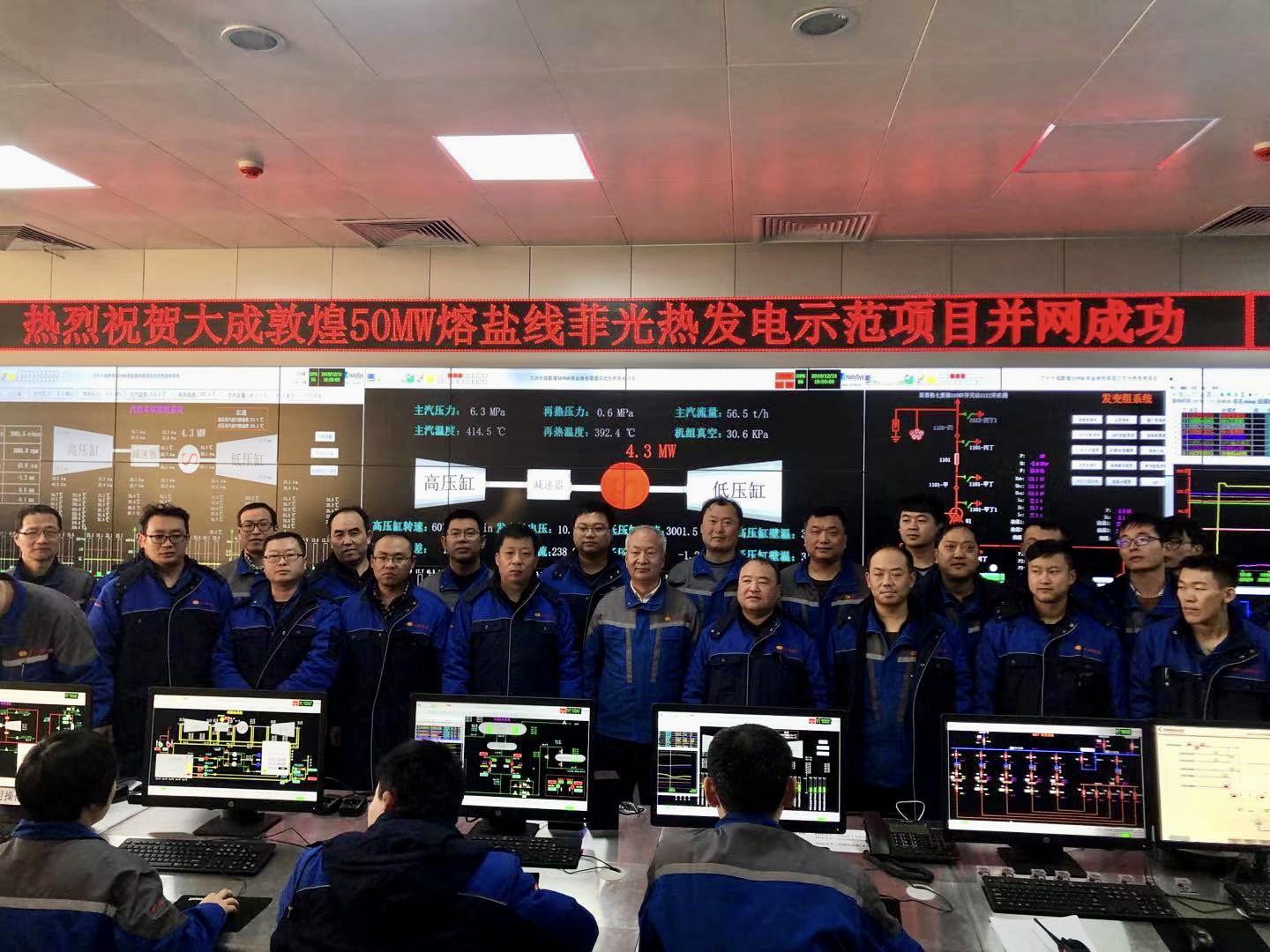 2019年12月31日17时50分,兰州大成敦煌50MW熔盐线性菲涅尔式光热电站首次并网发电成功,机组各系统运行状态良好、参数平稳。