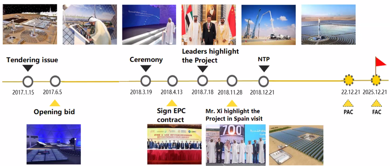 国家光热联盟讯:3月25日,ata Insights举办网络会议,ACWA Power和Abengoa相关代表受邀对“迪拜700MW光热发电项目进展(DEWA’s 700MW CSP project update)”进行了介绍。该700MW光热发电项目是迪拜Mohammedbin Rashid Al Maktoum太阳能园区四期950MW光热光伏混合项目的组成部分,也是全球迄今为止最大的太阳能发电项目。ACWA Power是该项目开发商,上海电气为项目总包方,DEWA为电力承购方。700MW光热项目由3个200MW槽式电站和1个100MW塔式电站组成。