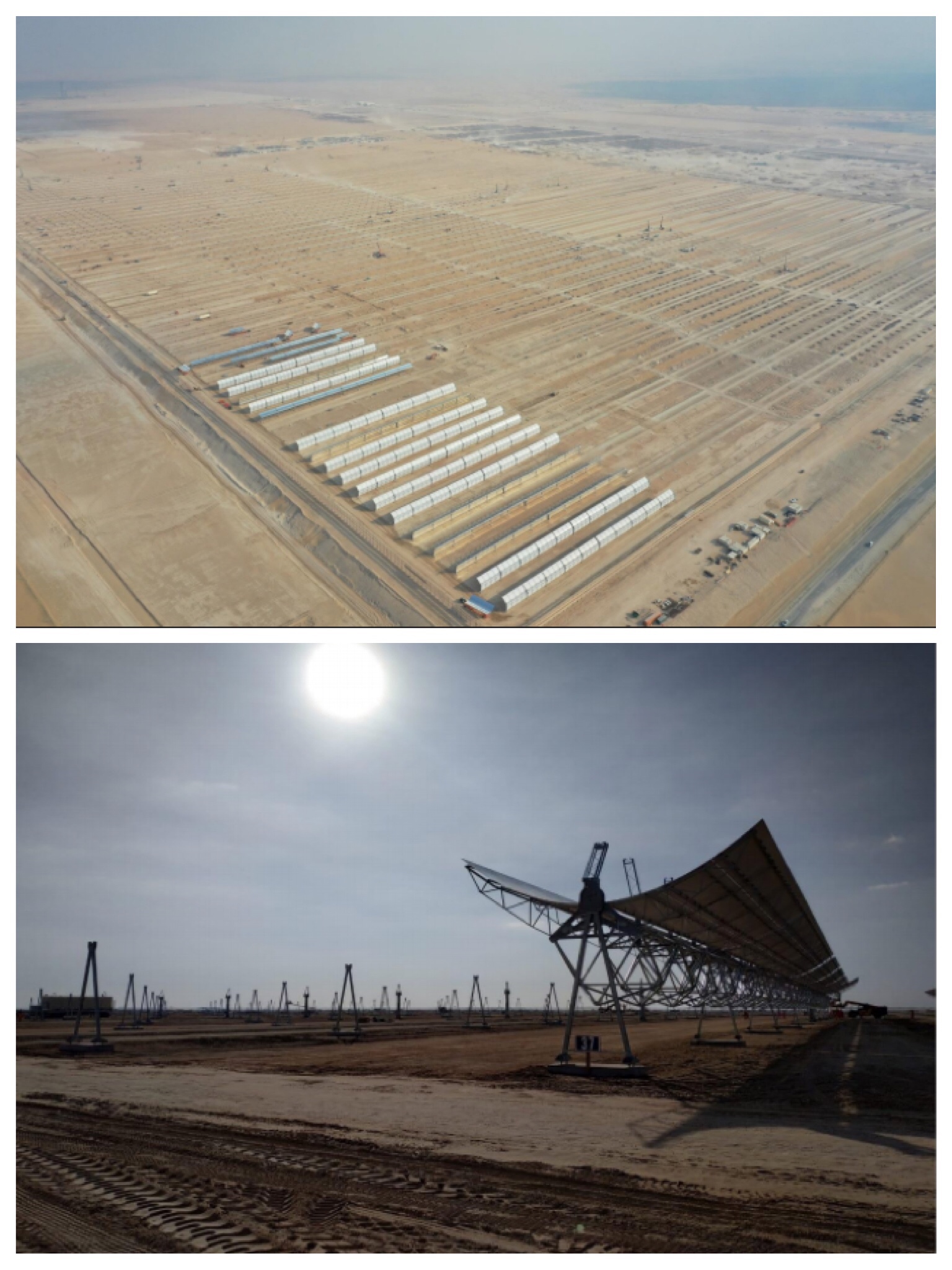 3个200MW槽式电站由西班牙阿本戈Abengoa提供技术支持,采用阿本戈的ST8.2型集热器,储热时长均为12.5小时;1个100MW塔式电站(配置15小时储热系统)由上海电气亮源提供技术支持,采用亮源能源的LH2.5型定日镜,储热时长15小时。