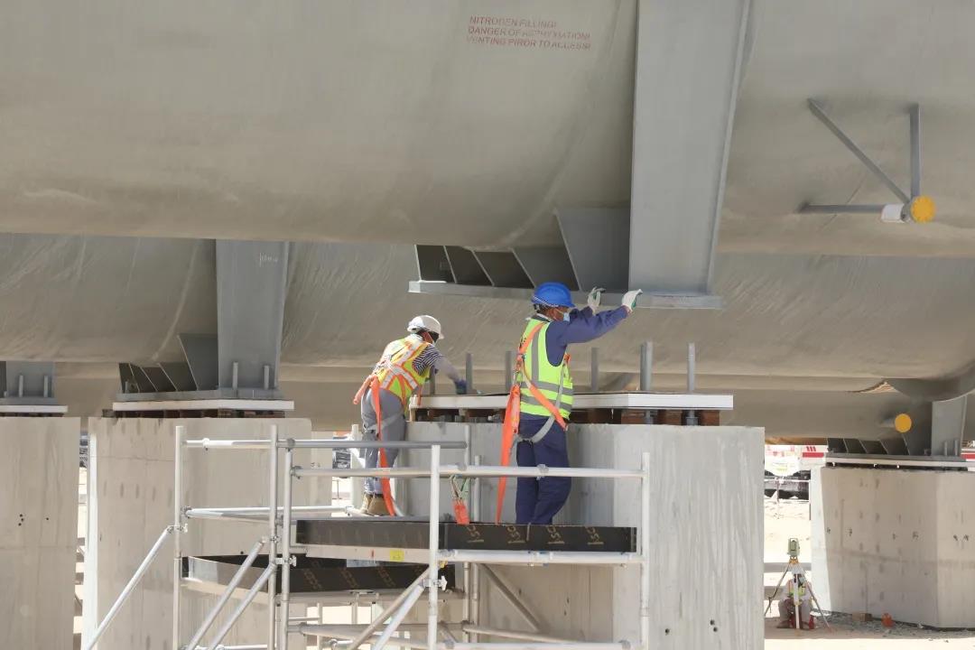 为了赶上施工进度,项目部积极协调运输公司、港口、迪拜路政部、警察局等相关单位,争取让设备尽早发运。同时,对运输方案不断优化,从最初单个溢流罐发运行程用时5天,缩短为2个溢流罐同时发运且仅需2天。