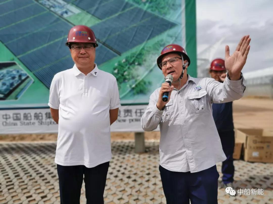 6月12日,巴彦淖尔市发改委党组书记、主任、能源局局长刘向阳到中船新能乌拉特中旗100MW10小时储能光热发电项目现场调研。中船新能副总经理罗文明陪同调研。