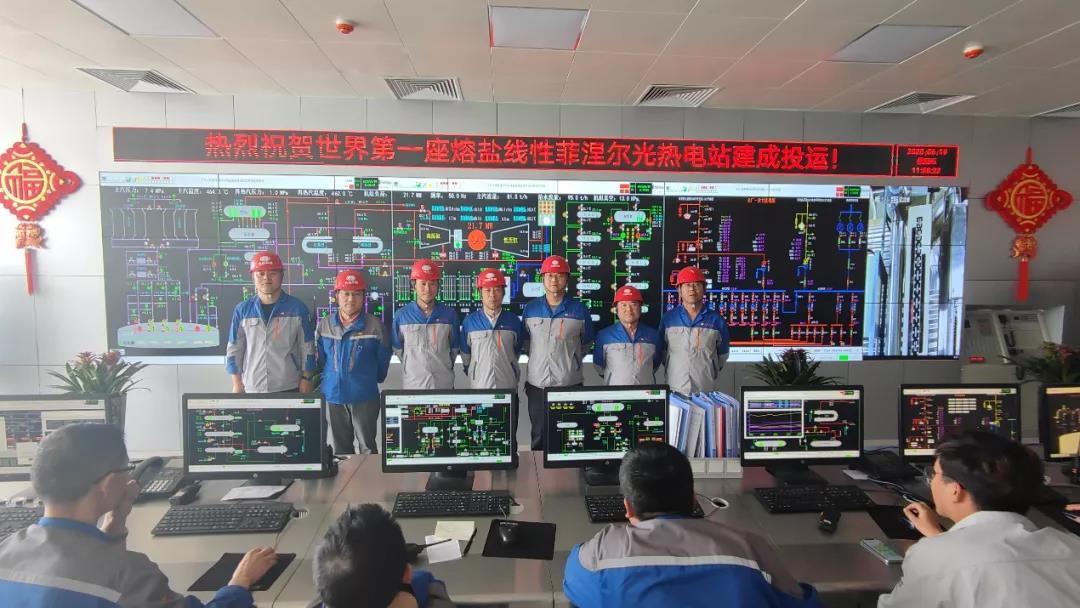 项目于2020年6月份开始全厂热态进盐调试,作为世界上首例将熔盐通入集热管内集热的太阳能光热发电项目,从热态进盐调试到再次并网发电仅用了18天,证明了我国熔盐为集热介质的线性聚焦光热发电的技术能力。