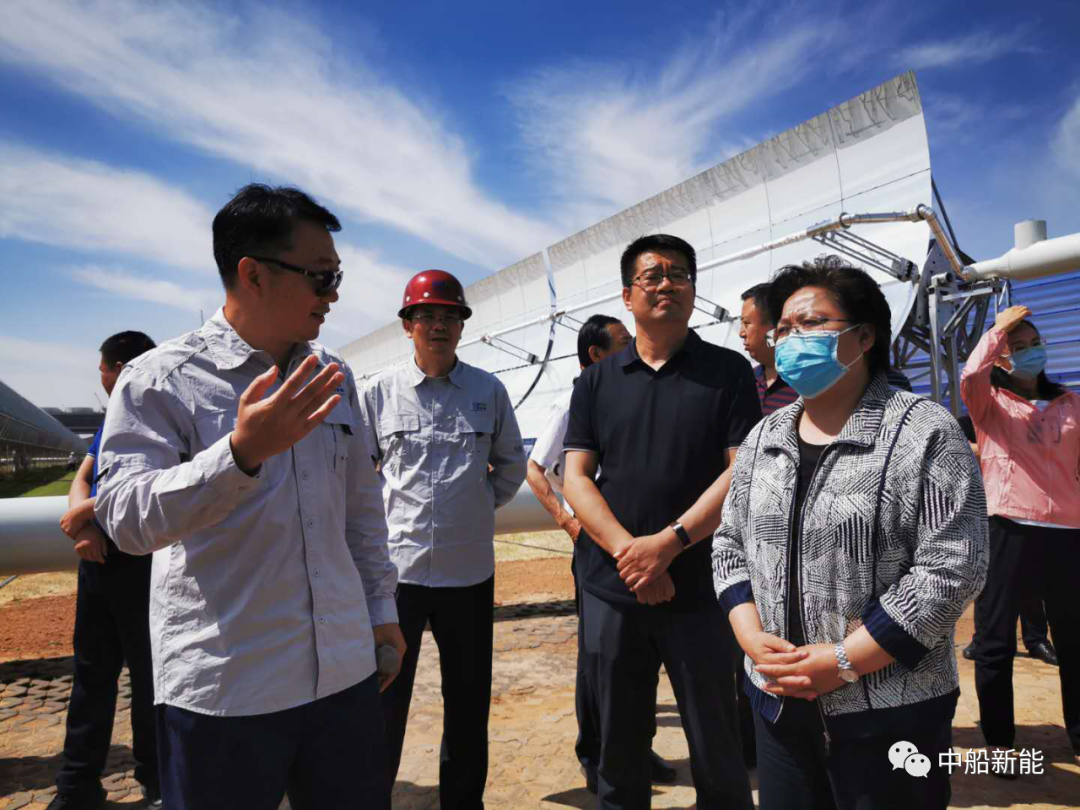 7月3日,内蒙古自治区副主席、政府党组成员艾丽华到中船新能乌拉特中旗100MW10小时储能槽式光热发电项目现场调研。中船新能董事长栾海峰,副总经理罗文明,总会计师、副总经理刘其中等陪同调研。