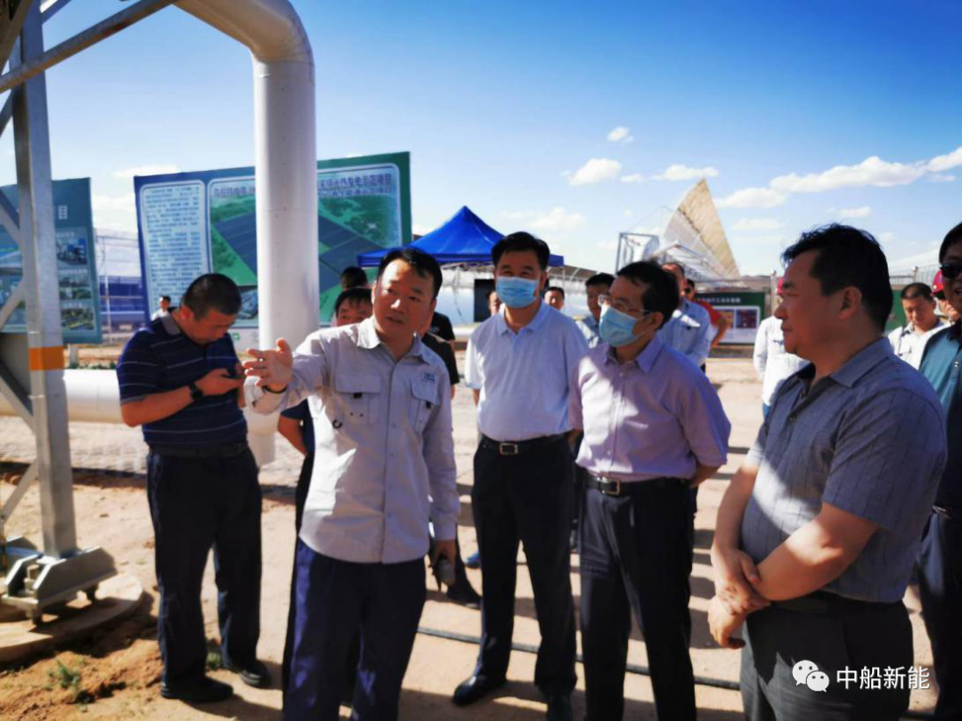 常军政实地察看了镜场、储换热岛、常规岛等区域,听取中船新能项目建设情况介绍。他对中船新能积极推进光热与储能产业发展,以能源领域问题为导向,高起点谋划光热产业在内蒙古布局,高质量建设国家级光热示范项目表示充分肯定。