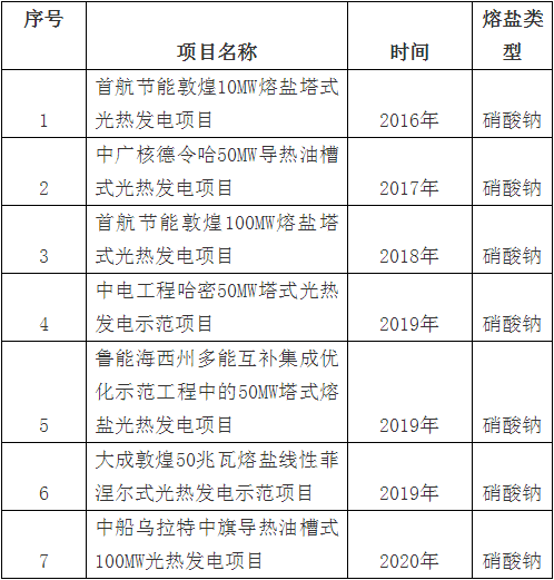 内蒙古乌拉特中截至目前,新疆硝石已成功为国内总装机超400MW的多个光热项目(详细业绩见下表)提供了近11万吨“库姆塔格”牌优质熔盐级硝酸钠产品(镁、钙离子含量均小于0.001%),供应量约占国内已建成项目总熔盐硝酸钠使用量的87%。