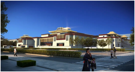 项目即将创造西藏建筑方面的多个第一:西藏最大量采用完全太阳能供暖系统的工程;最大量使用劲性钢结构的工程;首例大跨度钢桁架;首例采光、自动开启式通风的金顶工程。此次改扩建将全面提升,西藏博物馆公共服务功能,进一步改善文物馆藏条件。