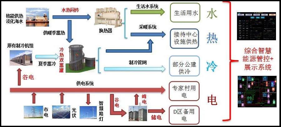 据介绍,“核能综合利用+智慧能源”工程将应用于山东核电员工宿舍区,主要包括以下几个板块: