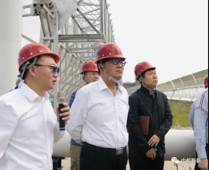 8月21日,中国船舶集团党组成员、副总经理姜仁锋,到国家光热示范项目——中船新能内蒙古乌拉特中旗槽式100MW 储能10小时光热发电项目现场视察工作。