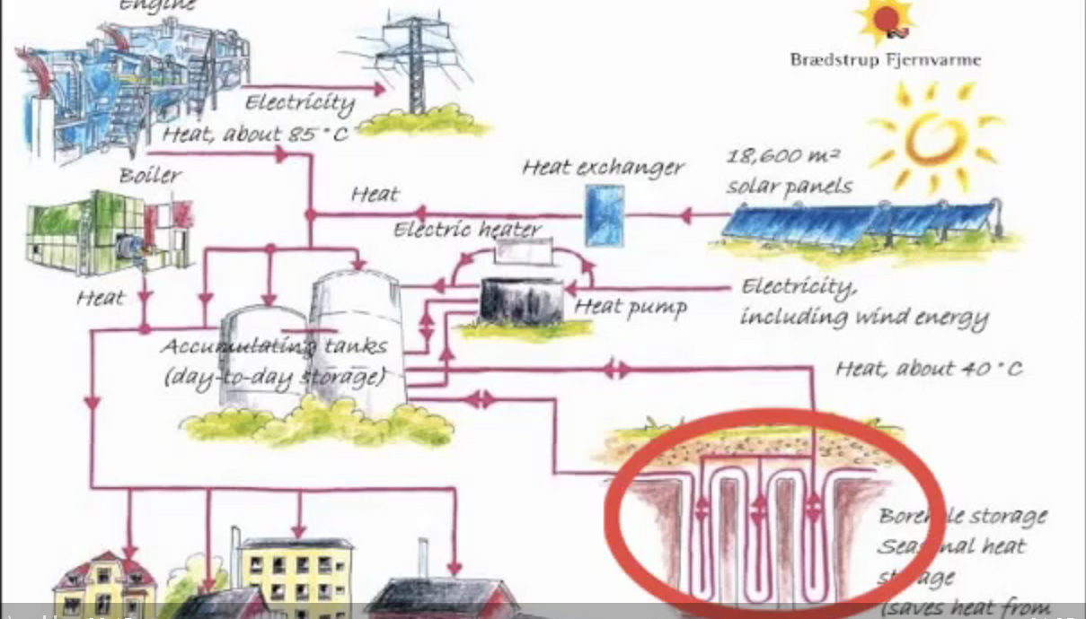视频2中的Brædstrup太阳能区域供热系统是以地埋管跨季节储热为主要特点的集中型太阳能热站,为周边1500户社区全年供应生活热水和采暖用热,包括学校、医院以及大部分的住户。该热站前身为燃气热电站,后考虑经济性与环保性要求,自2007年起,热站逐步增加太阳能供热(包括采暖与全年提供生活热水)。2015年太阳能总集热面积达到1.86万平方米,地埋管储热容量2万立方米。(杜凤丽 编译)