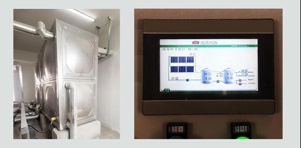 据了解,为最大程度利用太阳能,保证阴雨天气也能正常使用热水,系统配置的恒温调节水箱可根据使用需求进行自动调温,智能化控制保证60℃恒温热水全天24小时供给,热水畅享无忧!