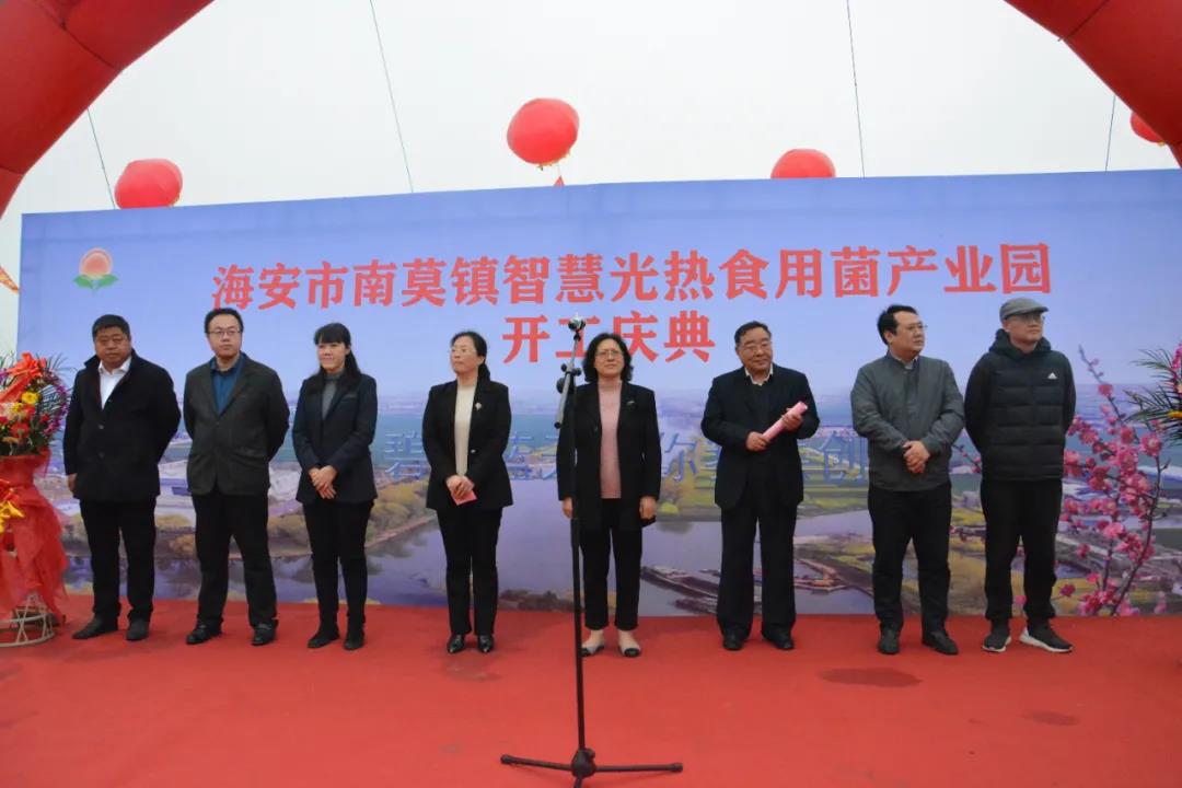 3月27日上午,江苏省海安市南莫镇智慧光热食用菌产业园建设项目开工奠基。山东省农科院资源与环境研究所、海安市农业农村局和南莫镇相关负责人参加活动。