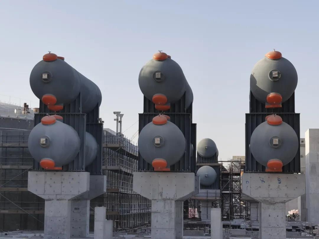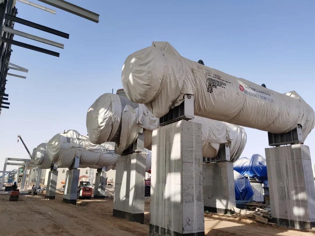 据悉,自3月2日第一台油盐换热器和蒸发器吊装以来,项目部共调动750吨汽车吊、500吨履带吊等吊装设备。一个月内累计吊装蒸汽发生器,油盐换热器和氮气罐等35件大型设备,总计3500余吨,为推进项目整体工程进度打下坚实基础。