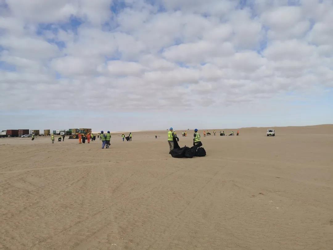 迪拜光热项目位于沙漠自然保护区,自项目规划和建设以来,始终严格遵循当地环境管理要求,并建立完善的环境管理体系,将保护现场和周边沙漠环境作为项目执行过程中重要部分。为减少项目建设对周边沙漠生态环境和动植物栖息地等影响,除常规废水、固体废弃物及危险品废物等由专业公司处理外,项目团队还定期组织员工到周边沙漠清理垃圾,并明确要求一旦发现动物必须立即上报,以便及时采取保护措施,将其转移至安全场所。