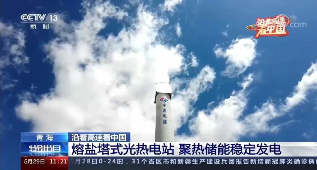 5月29日,CCTV13央视新闻频道推出的《沿着高速看中国》大型直播特别节目聚焦青海共和县光伏电站和光热电站群,并用大量的航拍镜头和实地采访展示了中电建青海共和50MW塔式光热电站的震撼之美。