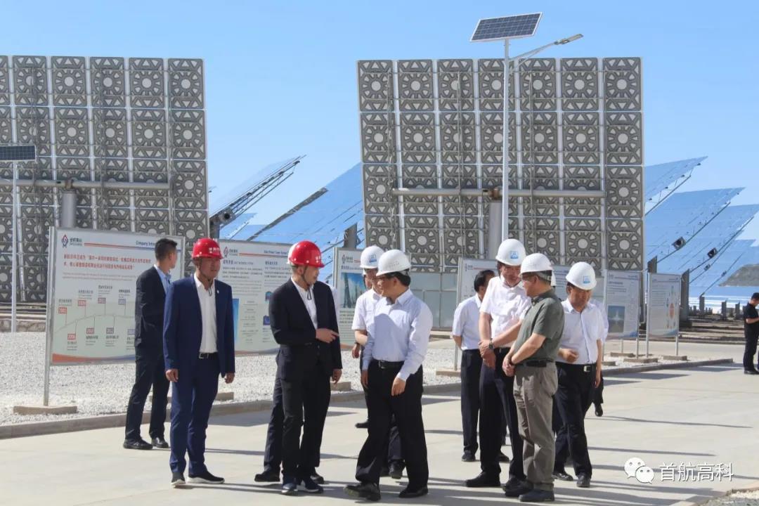刘福国首先介绍了项目的基本情况,光热发电的原理、特点和优势,并重点报告了项目的生产情况。黄文佳则向尹弘书记报告了迁址甘肃后首航高科的发展情况与投资完成情况,以及近期在甘肃开展风光热储项目的申报情况,表态首航高科在双碳目标战略指引下,立足甘肃二次创业,争取有较大的作为。尹弘书记详细询问了项目的生产情况,补贴到位情况,以及光热发电在电力体系的作用,并与随行人员交流光热发电产业和产业链的发展情况。