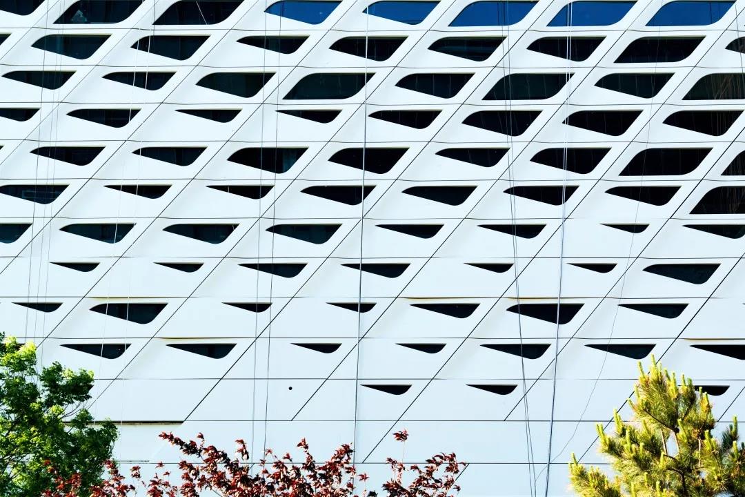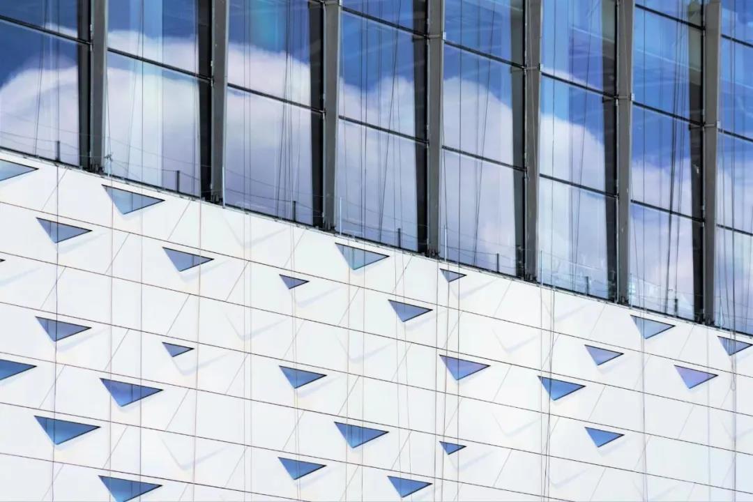 图:建筑与自然和谐呼应,阳光透过幕墙上错落有致的“飞鸟”洒向室内,形成柔和且活跃的光影变幻效果(来源:北京体育广播)