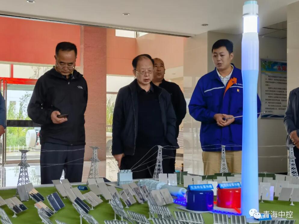 7月9日,夏军院士一行来到公司光热发电项目沙盘前,总经理刘文闯详细介绍了光热发电项目基本概况、发电原理。在50MW项目现场,具体了解了聚光集热系统、储热系统等技术及设备国产化率、电站用水量及气候等基本情况。