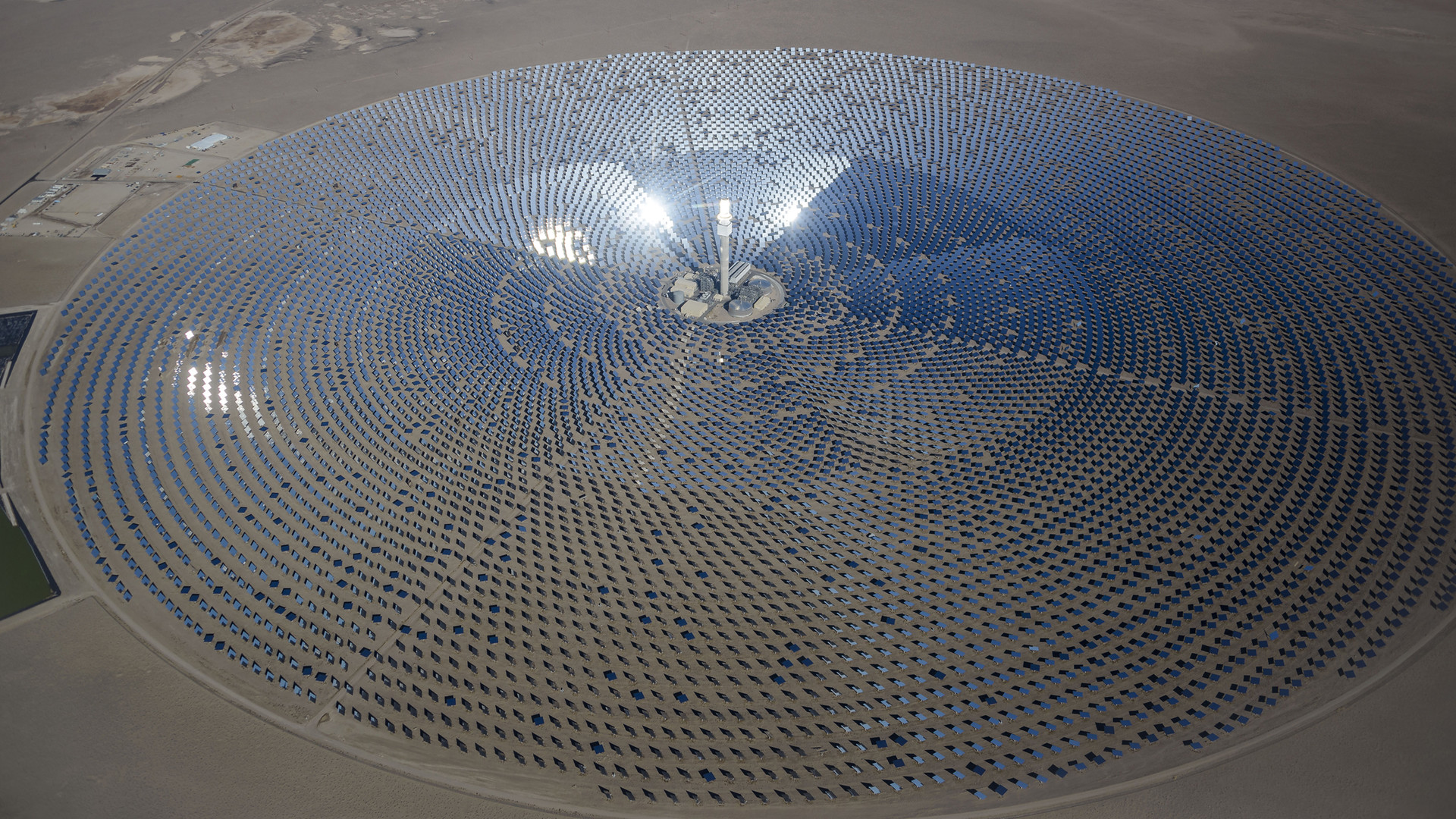 Crescent Dunes (新月沙丘)聚光太阳能热发电项目是美国首座商业化运营的塔式太阳能热发电项目,位于内华达州Tonopah(托诺帕),装机容量110MW,采用熔盐作为传热和储热介质,储热系统容量为10小时,由14个面板组成、高18.5米的吸热器位于170米高的集热塔顶部,吸收来自10,347 个定日镜反射的阳光,加热熔盐介质,产生热量用于推动汽轮机组发电。该电站计划为拉斯维加斯市约75,000户家庭提供清洁电力。