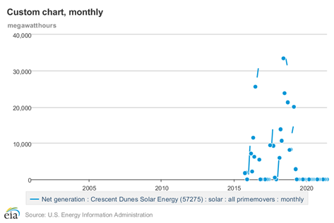 2019年,BNEF(彭博新能源财经)表示,电站从未达到预期的月产量。2019年10月,NV Energy公司终止购电合同,原因是生产失败(“failed to produce” )。同年,美国能源部接管了这一停运的电站。