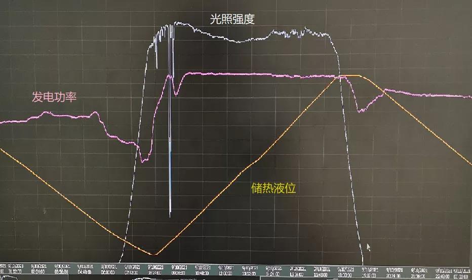 2021年9月10日0时-24时,国家首批光热发电示范项目-内蒙古乌拉特中旗100MW槽式导热油10小时储能光热发电项目(以下简称“乌拉特项目”),在上午多云天气条件下,单日发电量达到212.8万kWh。尽管7月、8月乌拉特地区阴、雨、多云天气多达34天(历史罕见),累计实际直射光辐射只有典型年的68%,但自2021年7月储能系统投运以来,该项目平均月发电量依然达到约3600万kWh,超过设计发电量。