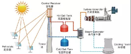 图:聚光系统熔盐塔式光热电站原理(资料图)