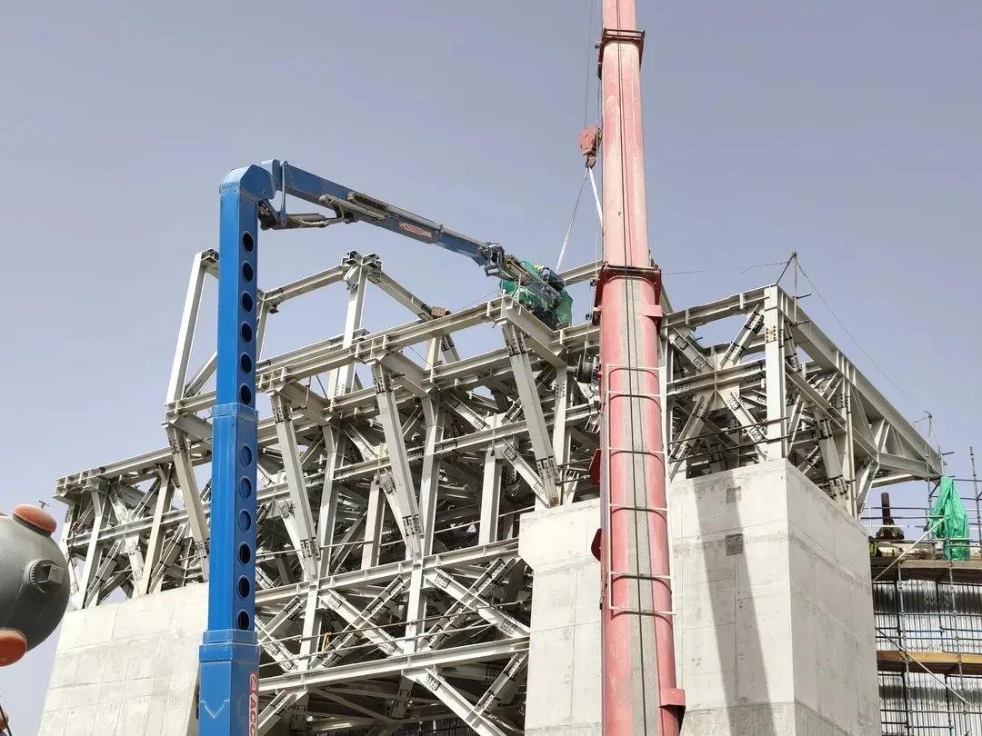 据了解,PT1区块是项目首个槽式综合体发电模块,钢结构总量超过8000吨,其具有单体多、工期紧、专业交叉作业多等特点,加之地处沙漠,不可控因素多,施工难度极大。中建科工旗下中建钢构(中东)技术团队科学策划、超前部署,制定安全可靠的施工方案,确保履约安全平稳,彰显技术实力。