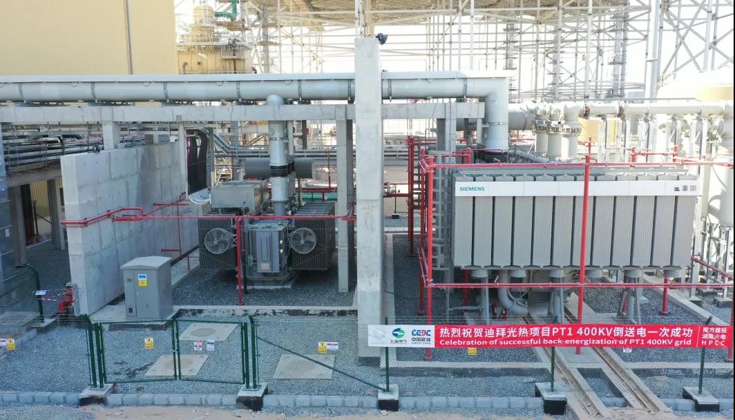 首次带电设备包括400千伏线路、主变、厂变、11千伏中压系统进线开关、6.6千伏中压系统进线开关等设备。设备带电后各项参数均显示正常、运行良好。根据迪拜水电局要求,设备倒送电完成后需静置观察24小时,然后陆续将厂用电倒送至11千伏, 6.6千伏,400千伏等各级电气系统用户。