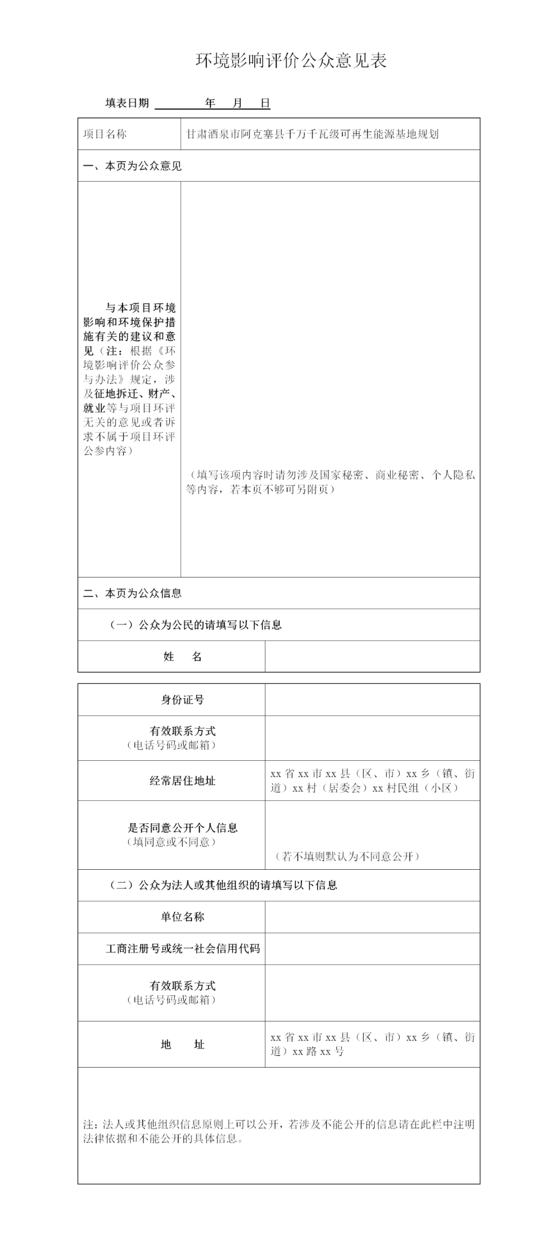 根据《环境影响评价公众参与办法》,现对甘肃酒泉市阿克塞县千万千瓦级可再生能源基地规划环境影响评价进行公众参与调查。
