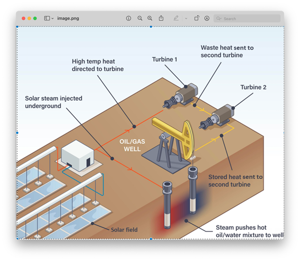 美国光热发电技术提供商Hyperlight Energy公司首席执行官John King表示,石油公司Hathaway正在利用聚光太阳热能来提高石油的采收率。天然气传统上是增加石油产量的能源。但在这种情况下,太阳能被用来产生蒸汽,然后将蒸汽注入油井,使石油松动。与此同时,这些能量也可以储存在地下岩石中,形成一个可以按需运行的巨型地热电池。这项技术将现有油井变成了清洁的能源发电机。