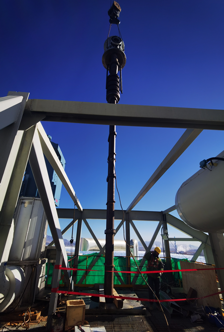 经过一年多时间的研究与试验,国产冷盐泵样机于2021年12月底安装于青海中控德令哈50MW光热电站冷盐罐上方熔盐平台上。国产冷盐泵样机的主要技术参数如下:流量为1155m³/h,扬程为339m,液下深度为15m,电机功率3250kW。与原有两台进口冷盐泵(一用一备的配置)的出口并联,共同为德令哈50MW项目电站的正常运行保驾护航。