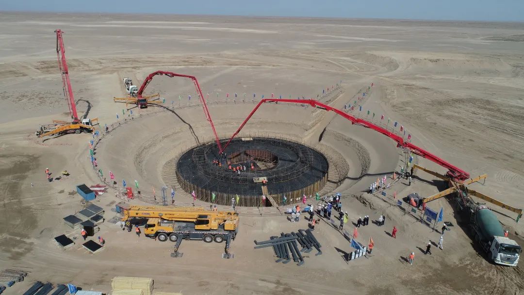 6月17日,金塔中光太阳能“10万千瓦光热+60万千瓦光伏”光热项目吸热塔基础第一方混凝土顺利浇筑。