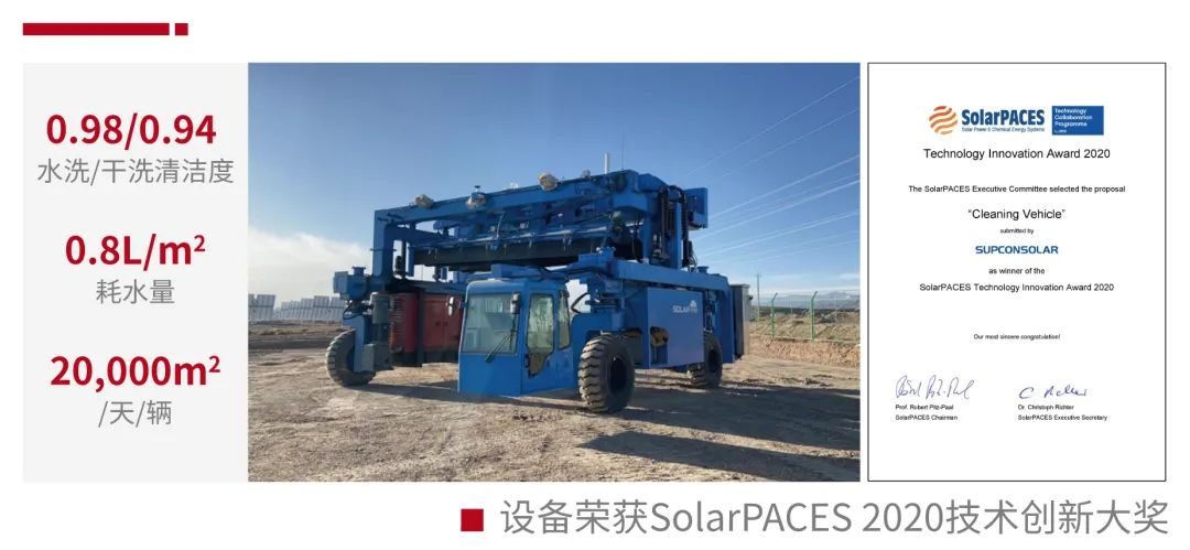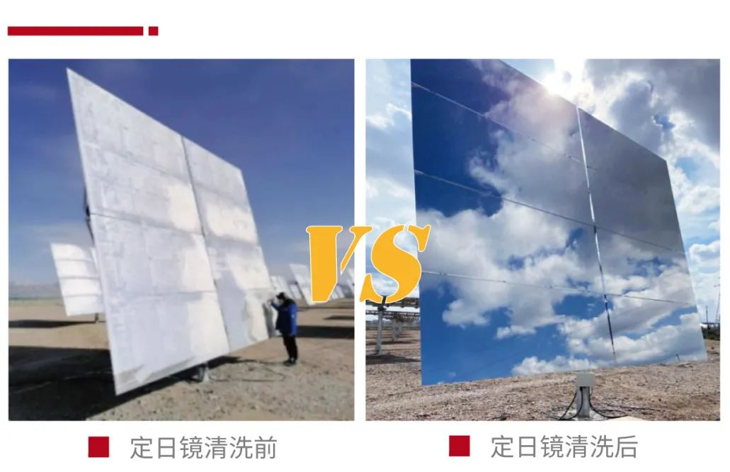 光热电站保持定日镜镜面清洁度非常重要。可胜技术创新性的全自动无人驾驶清洗车,具备自动导航、水洗/干洗功能,可大幅度提高镜场清洗效率,保证镜面清洁度,并降低运营成本。