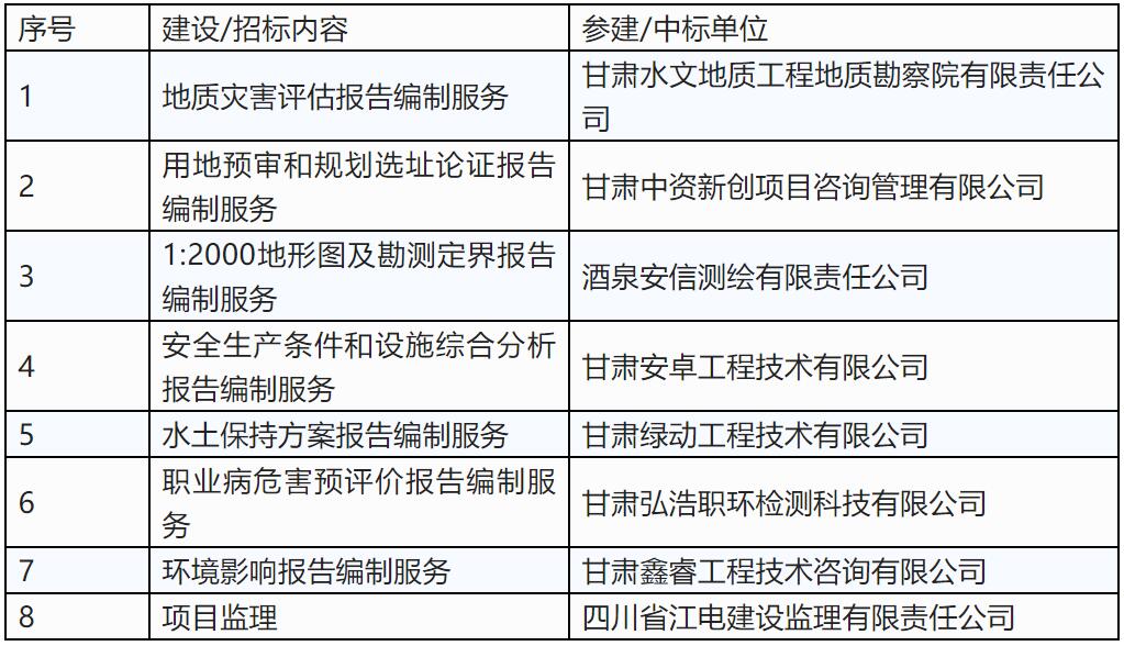 该项目已经发布选址论证报告、占用林地可行性研究报告和占用林地现场查验报告、安全预评价报告、地质灾害危险性评估报告、职业病危害预评价、洪水影响评价报告、地震安全性评价、用地技术勘界报告、水资源论证报告、社会稳定风险分析专题报告等10项询价采购公告。