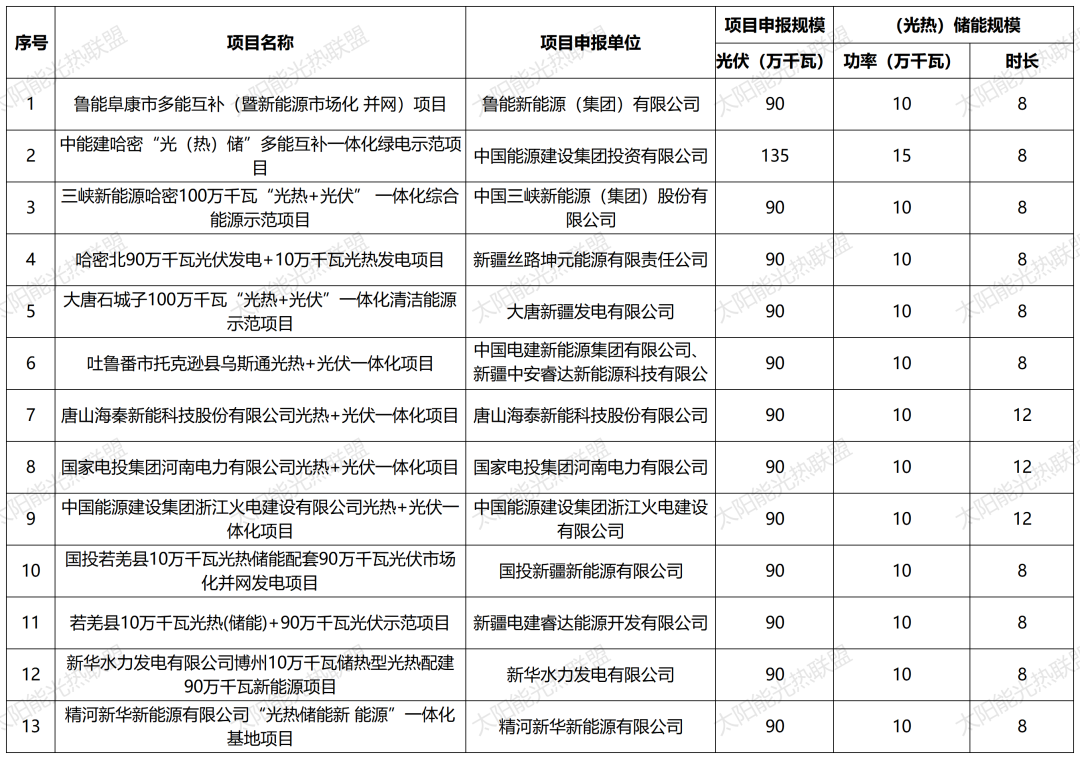 该项目申报单位为大唐新疆发电有限公司,项目规划建设装机容量为100万千瓦,其中光热为10万千瓦,配置8小时储能。
