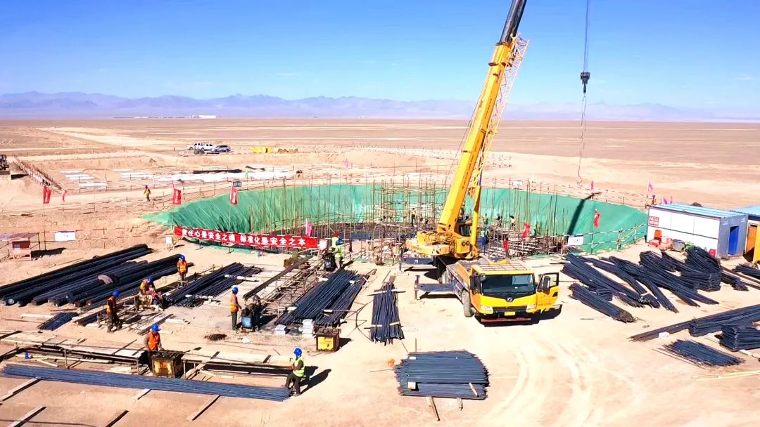 国庆期间,在四十里戈壁项目建设现场,项目基地基础设施、项目主塔主体工程等各项工程井然有序推进,一幅大干快上的繁忙景象。项目施工单位组织人员设备,全力以赴推进项目建设进度,确保项目如期完成建设任务。