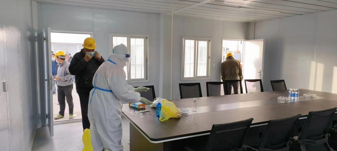 在疫情爆发初期,巴彦淖尔龙腾光热储能科创园发展有限公司积极组织总包单位、监理单位、施工单位成立龙腾光热科创园建设项目疫情防控领导小组,严格落实内蒙古住建厅《关于进一步做好党的二十大期间住建领域安全防范工作的通知》文件要求,对施工工地全面实施封闭管理,全面落实施工人员实名制管理,对进场人员实行每日体温检测登记、查验“健康码”等,建立“一人一档”管理制度。督促现场人员在公共场所佩戴口罩,做好作业区、办公区、生活区的通风、消毒等防疫工作,加强对从业人员的身体状况的监测,强化工地饮食、环境卫生管理,落实卫生防疫制度,同时,整合医护资源进工地,为施工人员提供上门核酸检测服务,筑牢工地防御的“闭环”。