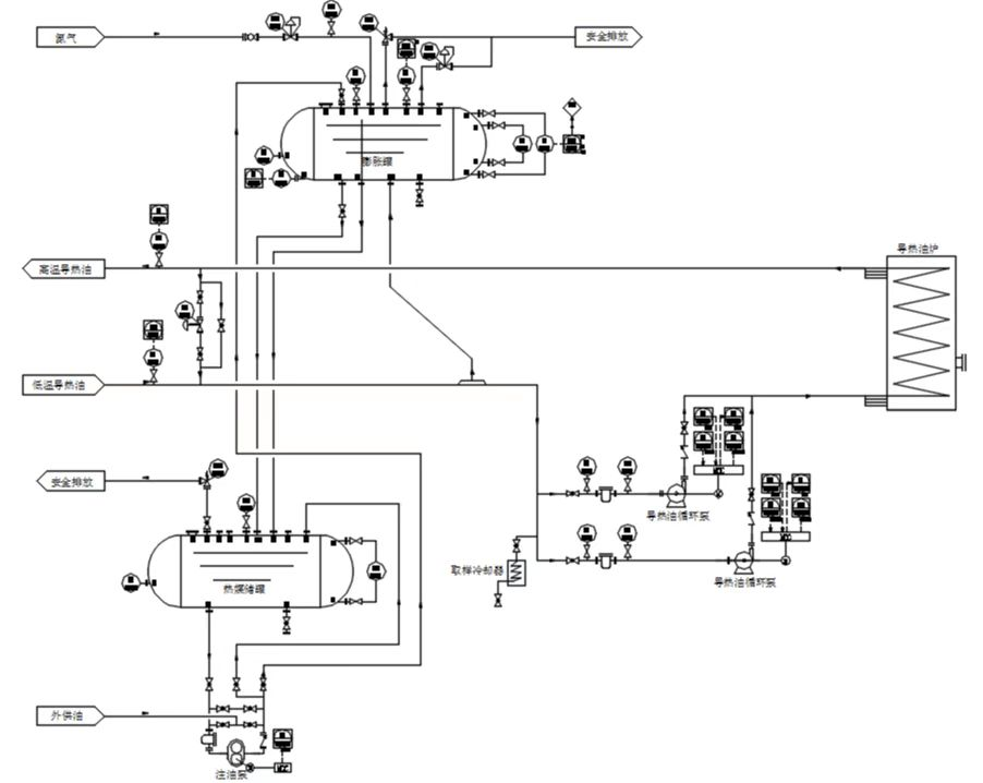 在设计方面考虑了高温、变流量及流阻要求等诸多苛刻要求,创造性的使用了炉外导热油换热器,有效的回收了热量,不仅达到了节能的要求,而且控制了助燃风温度,抑制了低氮氧的生成。