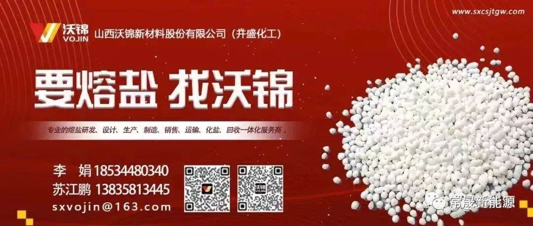 在技术和工艺方面,新项目将充分发挥利用青海盐湖原材料产地优势,结合常晟新能源先进工艺技术的优势,以及其目前国内最大产能和最多业绩经验,联合打造更大的熔盐新材料制造基地,新项目计划2023年底前正式投运,将为光热熔盐储能高速发展成本降低,稳定供货满足新增市场的需求,提供最佳熔盐产品支撑。