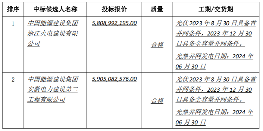 12月28日,吐鲁番华新新能源有限责任公司发布鄯善七克台 1GW“光热储能+光伏”一体化示范项目 EPC 总承包工程中标候选人公示。据公告,中标候选人第一名为:中国能源建设集团浙江火电建设有限公司。