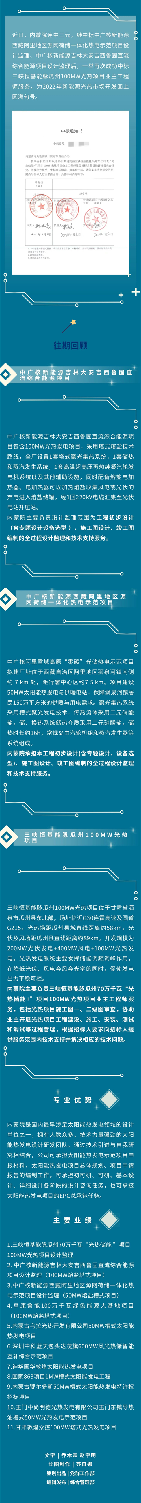 这是继中广核新能源西藏阿里源网荷储一体化热电示范项目设计监理、中广核新能源吉林大安吉西鲁固直流综合能源项目设计监理后,再次中标。