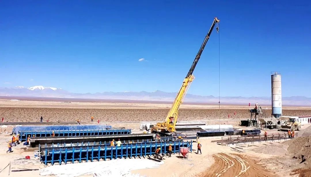 据阿克塞县融媒体中心消息,位于甘肃省阿克塞县四十里戈壁千万千瓦级太阳能热发电基地,阿克塞县汇东新能源有限责任公司750MW光热+光伏试点项目建设现场,工作人员克服高海拔、严寒等不利因素,全力推进项目建设。