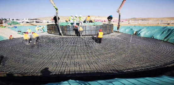 三峡恒基能脉(酒泉)新能源发电有限公司由恒基能脉新能源科技有限公司(持股51%),中国三峡新能源(集团)股份有限公司(持股49%)联合组成。该项目总装机容量70万千瓦,其中:风电工程40万千瓦,光热工程10万千瓦,光伏工程20万千瓦。风机基础的顺利浇筑是项目实现高质量履约的重要环节。