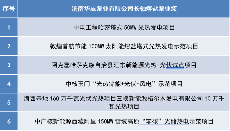 济南华威泵业有限公司是熔盐泵专业生产厂家,已经为多个光热发电项目提供长轴熔盐泵(18米左右),包括高温熔盐泵与低温熔盐泵。