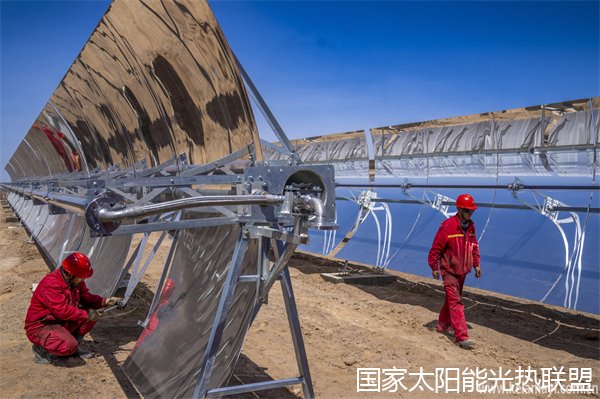 6月9日,新疆油田公司准东采油厂火烧山作业区,技术人员在光热加热系统耦合智能控制技术装置下安装组件配件
