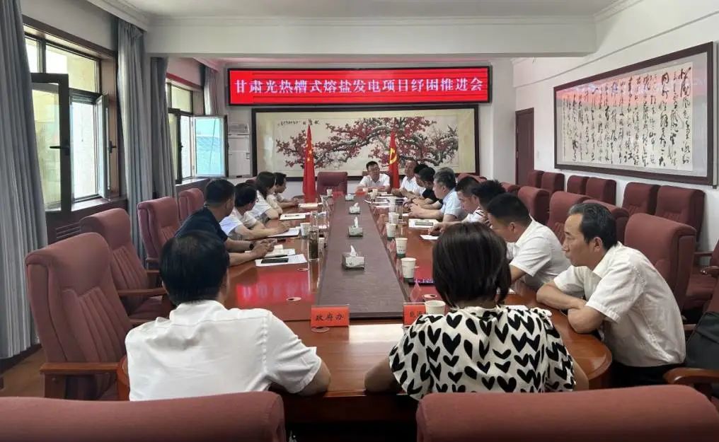 6月26日上午,甘肃光热槽式熔盐发电项目纾困推进会议召开。阿克塞县委书记陶涛,县委副书记、县长库美斯剑与甘肃电通电力公司、水发兴业(甘肃)新能源有限公司、甘肃光热等企业负责人就推进甘肃光热槽式熔盐发电项目早日复工进行深入交流。